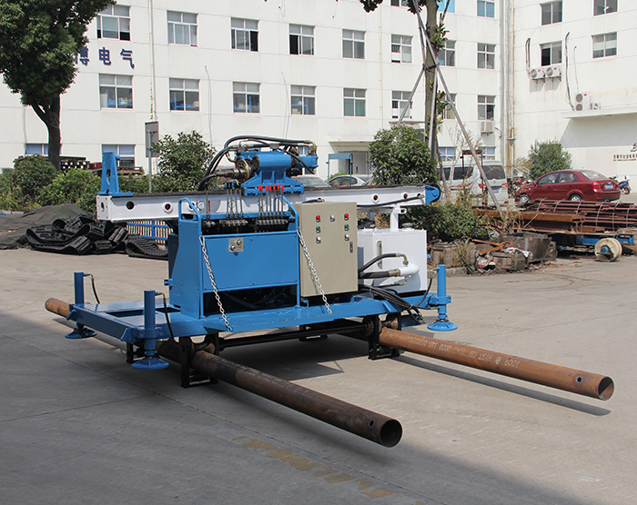 6、自动走管式结构。钻机和管子都可以自动行走,省去了劳动力。并且配置了四只液压支腿,操纵方便,安全可靠。